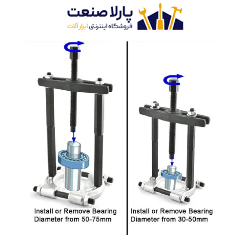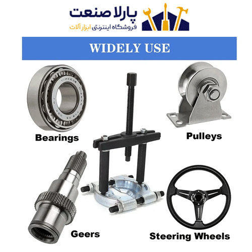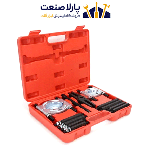 کیت ۱۴ پارچه بلبرینگ کش و فولی کش آلیاژ فولاد و کروم وانادیوم کفی بلبرینگ فورج شده سایز ۳۵ تا ۵۰ میلیمتر کفی بلبرینگ فورج شده سایز ۵۰ تا ۷۵ میلیمتر دارای ۹ عدد میله تنظیم فولادی