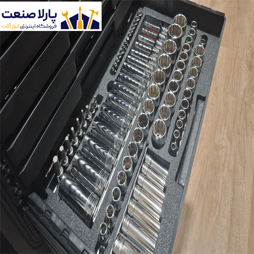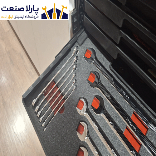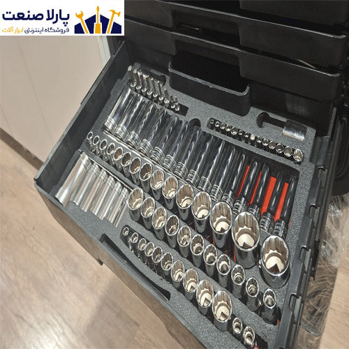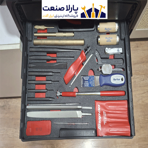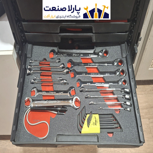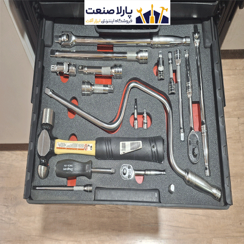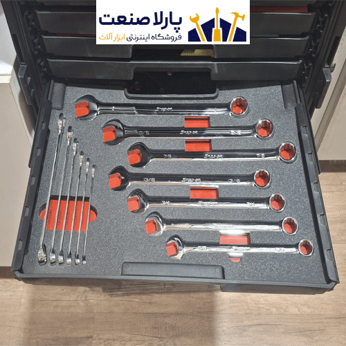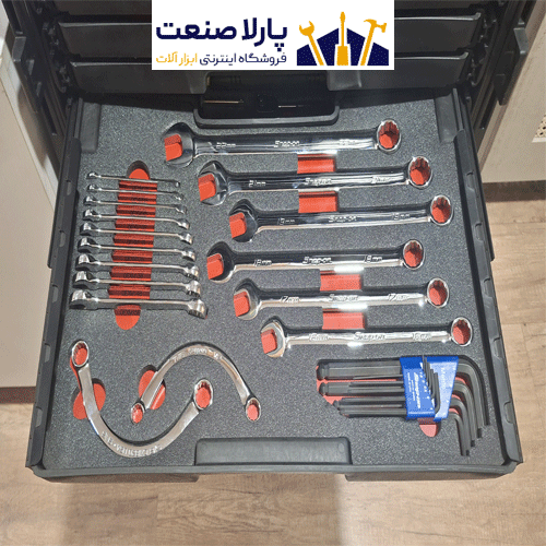 همه ابزارا قشنگ تو فومهای سفارشی چیده شدن و تو کشوهای جداشونده جا گرفتن.
