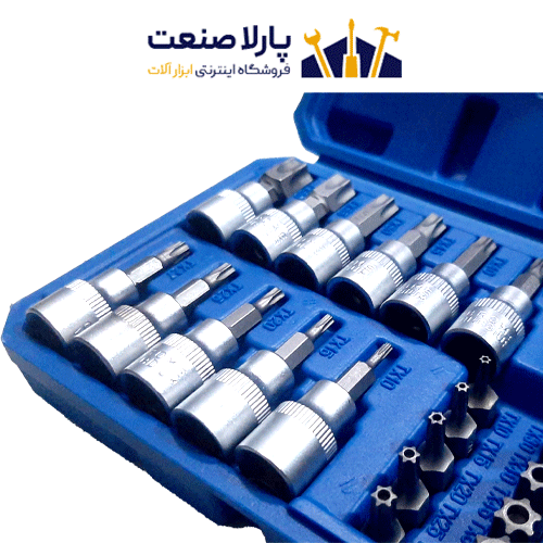 جعبه بکس ستاره ای هورس با درایو 3/8 از کیفیت بی نظیری برخوردار است و مقاومت عالی در برابر فشار دارد این جعبه بکس شامل الن بکسی ستاره ای و بیت ستاره ای و بکس E می باشد که در سایز های زیر است بکس E در سایز های E4-E5-E6-E7-E8-E10-E11-E12-E14-E16-E18-E20 بوده و آلن بکسی ستاره ای در سایز های T10-T15-T20-T25-T27-T30-T40-T45-T50-T55-T60 بوده و بیت های ستاره ای سایز های T10 -T15 -T20 -T25 -T27 -T30 -T40 -T45 -T50 -T55- بوده و یک عدد هولدر 3/8 برای استفاده راحت تر از بیت ستاره ای دارد این مجموعه 34 عددی ستاره یک مجموعه کامل برای استفاده می باشد