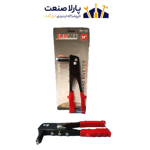 جوملی کد 0-1753 سایز 10 اینچ یک دستگاه پرچ دستی است که شرکت جام لی تولیدکنندهی آن است. به کمک این مدل میتوانید از میخهای پرچ با قطرهای 2.4، 3.2، 4 و 4.8 میلیمتری استفاده کنید. این دستگاه حدود نیم کیلوگرم وزن دارد و حمل و استفاده از آن بسیار آسان است. برای حفظ سلامت دستگاه، یک ضامن فلزی در انتهای دسته قرارگرفته تا در زمانی که از دستگاه استفاده نمیکنید انبر قفل شود. علاوهبر استفاده از پیچ و مهره، انواع جوش و چسب، پرچکردن هم از روشهای اتصال ورق و قطعات مختلف به هم محسوب میشود.پرچ نوعی میخ است که با استفاده از دستگاه دستی یا بادی مورد استفاده قرار میگیرد. برای اتصال میخ پرچ به قطعات مختلف ابتدا باید محل اتصال را با دستگاه دریل سوراخ کنید. سپس سر میلهای میخ پرچ را داخل دستگاه کرده و سر پرچ را داخل سوراخ ایجادشده قرار دهید. انبر (دستگاه پرچ دستی) را چند بار باز و بسته کرده که محل اتصال به هم چفت شود و دستگاه بهصورت خودکار از محل اتصال جدا شود. در نظر داشته باشید مقدار اضافی میخ پرچ را باید از داخل دستگاه خارج کنید؛ درغیراینصورت دستگاه خراب خواهد شد. شرکت جوملی ازجمله عرضهکنندگان مطرح داخلی در زمینهی انواع ابزارهای دستی است. این شرکت با معرفی محصولاتی که از نظر کیفیت در سطح قابلقبولی قرار دارند و تهیهی آنها ازلحاظ قیمت مقرونبهصرفه هستند.
